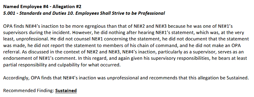 The Chief at the time, Gil Kerlikowske, exonerated the two officers in a press statement, a month before the OPA investigation, headed by a Seattle police captain at the time, also did not sustain the allegations