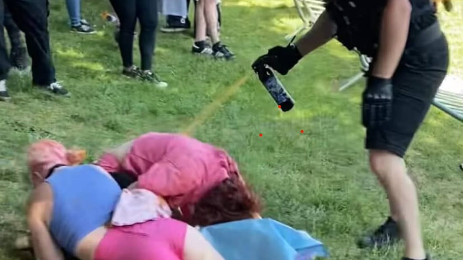 Earlier that afternoon, members of the Community Response Group, the anti-protest unit Muoio belongs to, had ridden into the park on bicycles and made several arrests after someone released a balloon belonging to the fundamentalist group on the edge of the concert. Officers lost sight of the original suspects and started detaining or arresting anyone wearing black bloc.