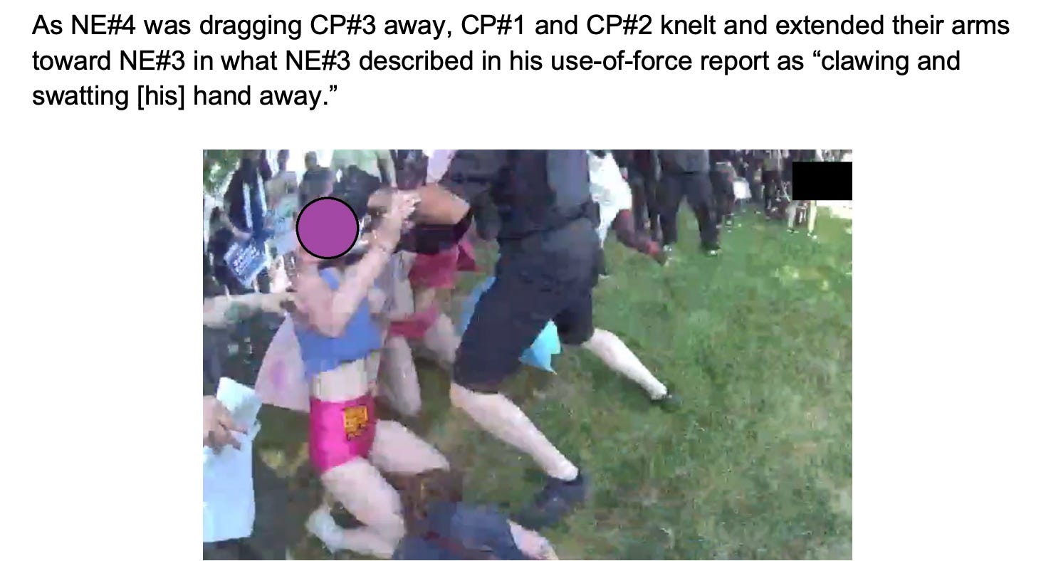 Notably, neither of the two protesters was ever charged with assaulting an officer, and their misdemeanor obstruction charges were never prosecuted. Explaining its decision not to sustain excessive force allegations, the OPA wrote that the “picture did not capture the entire altercation and the rapid speed at which the altercation unfolded.”