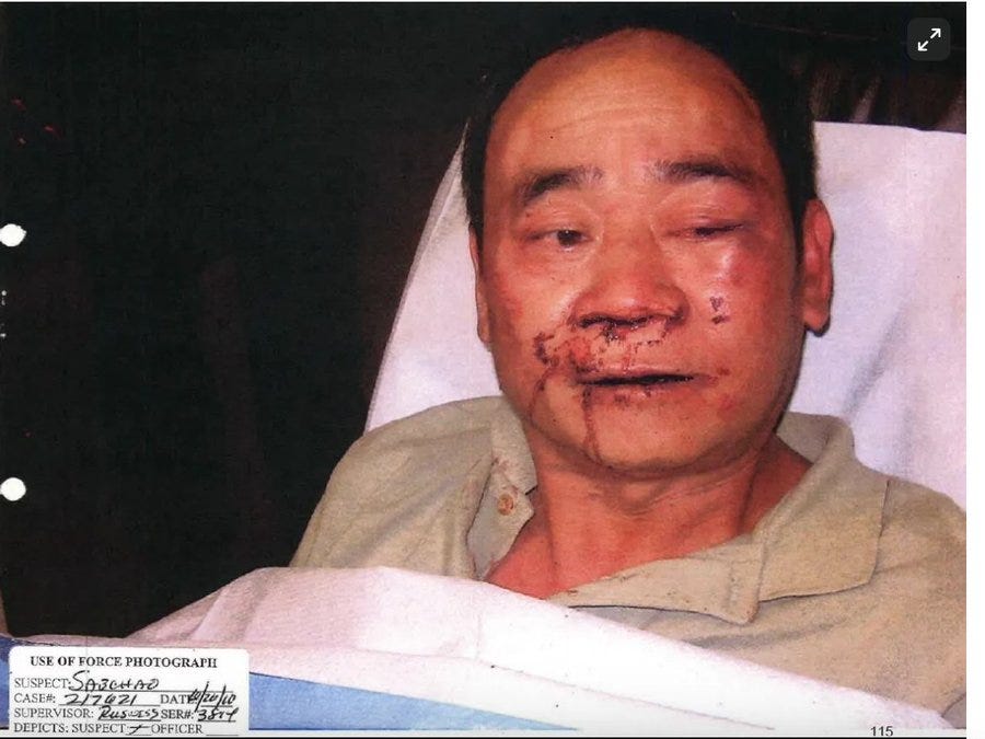 Saechao was disoriented when they tried to wake him. He didn’t realize they were police officers and kicked one of them. Officers beat and Tasered him. Patterson struck him in the side with a flashlight repeatedly.