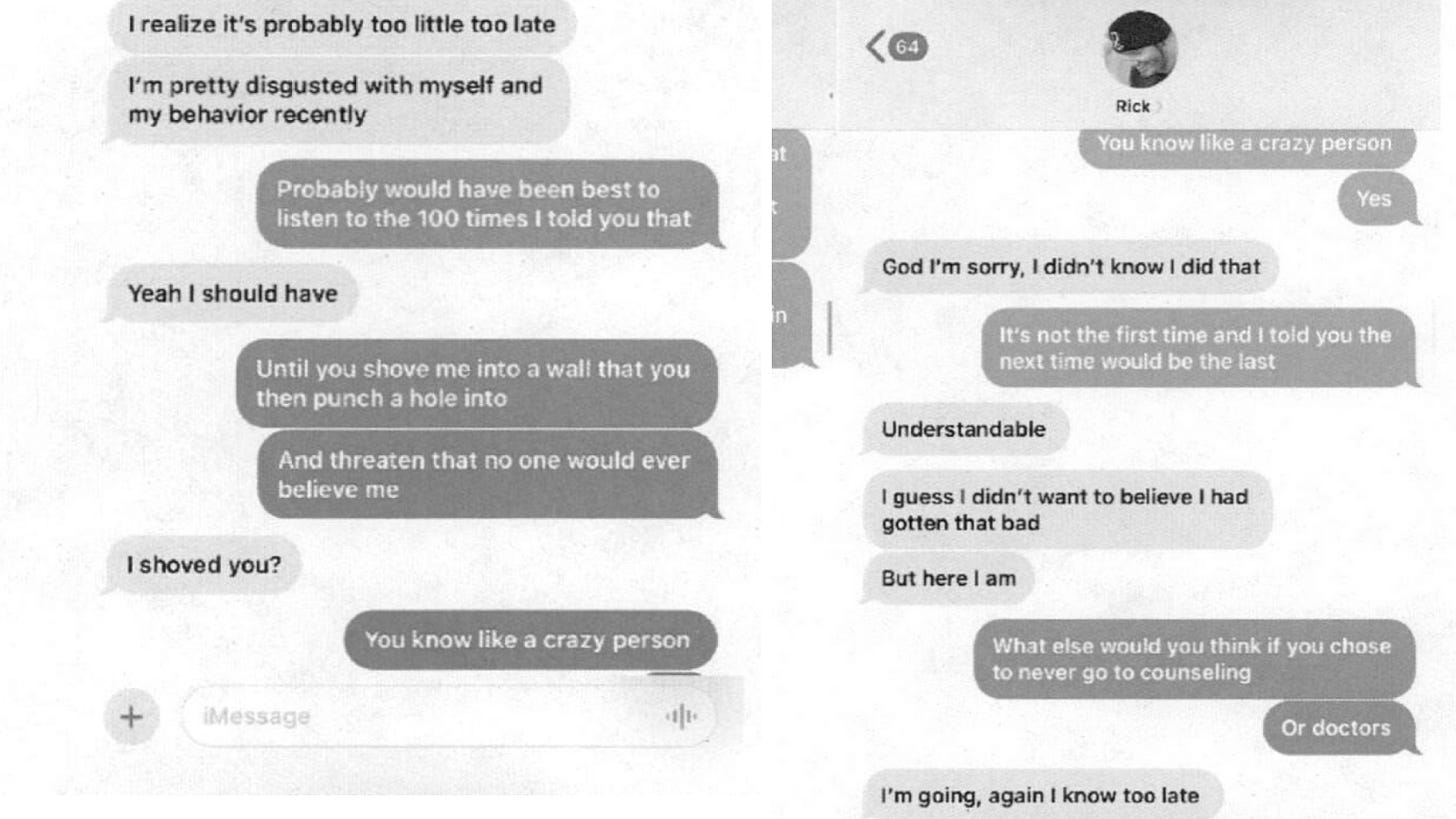 The petition for a protective order contains screenshots of text messages as well as photos of bullet holes and a patched-up wall where Norris reportedly punched.