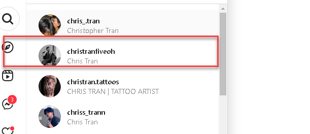 If they were earnestly searching for a social media account, the first logical thing to do is use the built-in search engine. If one enters “Chris Tran” into the Instagram search, Brownlee’s account “christranfiveoh” is the second result on a relatively short list.